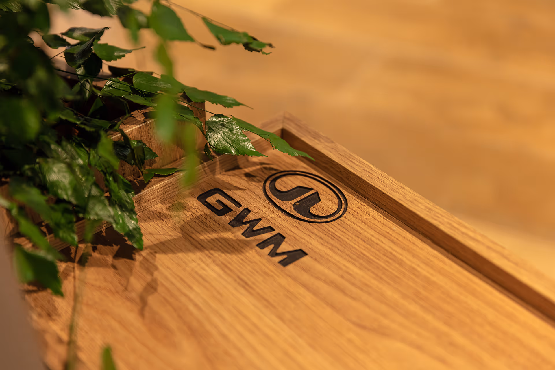The minimalist and modern aesthetic creates a welcoming atmosphere, where everything is designed to reflect the brand's values. Neutral colors dominate the space, promoting visual balance and allowing innovation to stand out on its own. The chosen materials — sustainable and consciously sourced — reinforce GWM's commitment to the environment, translating in every detail the concern for environmental impact and responsibility.